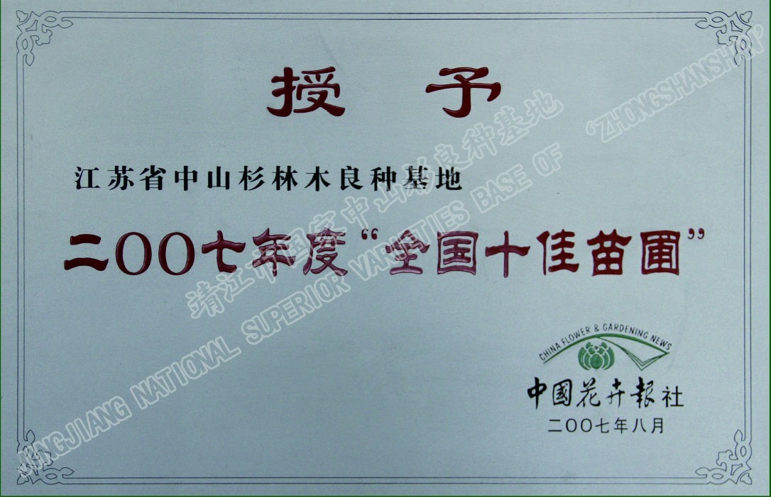 靖江市中山杉林木良種有限公司單位現(xiàn)有職工120人,其中中高級(jí)技術(shù)人員26人,初級(jí)技術(shù)人員45人,高級(jí)技工45多人,備有多功能灑水車、高空作業(yè)車、挖掘機(jī)、草坪噴播機(jī)等齊全的園林施工機(jī)械,年承接綠化工程100萬(wàn)平方米以上。公司自成立以來(lái),參與了眾多省內(nèi)外綠化重點(diǎn)工程的建設(shè),先后完成江陰長(zhǎng)江公路大橋、潤(rùn)揚(yáng)大橋、南京三橋、蘇州吳中大道、揚(yáng)州西北線繞城、無(wú)錫沿江高速、無(wú)錫342省道、滬寧高速、泰高路、寧通高......